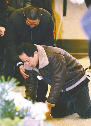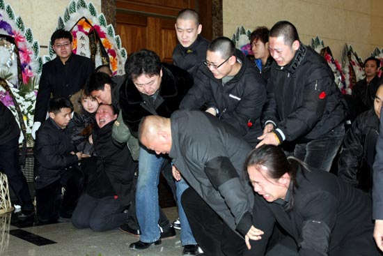 上午7點(diǎn)44分,德云社內(nèi)部的吊唁活動(dòng)率先進(jìn)行。郭德綱、王惠夫婦,于謙、王海、李菁、何云偉、曹云金等骨干演員率百名演職人員向張文順先生的遺體默哀,禮畢后人人號(hào)啕大哭,痛不欲生。雙眼紅腫、哽咽不斷的郭德綱嘆息說(shuō),張先生走得太早了,自己失去了一位摯友,他愿老人能夠在天享福,歡笑來(lái)生。郭德綱承諾會(huì)照顧張夫人,并用心培養(yǎng)張文順的外孫寧云祥在德云社說(shuō)好相聲。