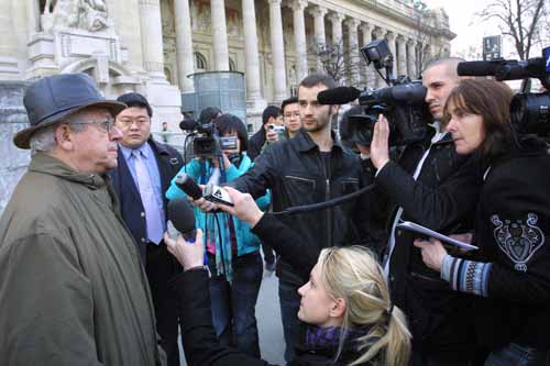據(jù)法國(guó)《歐洲時(shí)報(bào)》報(bào)道,2月25日下午,在圓明園獸首拍賣(mài)前夕,部分旅法華僑華人與留學(xué)生自發(fā)到巴黎大皇宮前拍賣(mài)現(xiàn)場(chǎng)外,散發(fā)說(shuō)明圓明園劫難及獸首來(lái)歷的小冊(cè)子,告訴法國(guó)人圓明園歷史的真相,表明旅法華僑華人及留學(xué)生的立場(chǎng),督促有良知的法國(guó)人盡快通過(guò)一定渠道歸還被劫的歷史文物!秷A明園大劫難》作者、法國(guó)歷史學(xué)家布里賽等法國(guó)友人也到現(xiàn)場(chǎng)宣講真相。這次活動(dòng)受到法國(guó)主流媒體的廣泛關(guān)注。