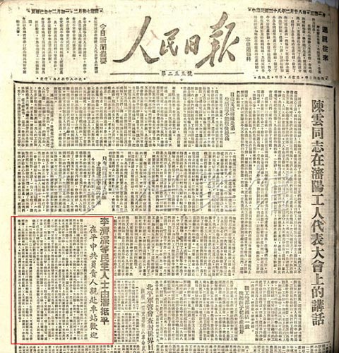 4.1949年2月28日,《人民日報》關(guān)于李濟深等民主人士由沈陽抵達(dá)北平的報道