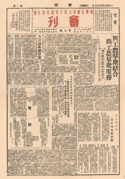 4. 1949年3月3日,中華全國學生第十四屆代表大會會刊