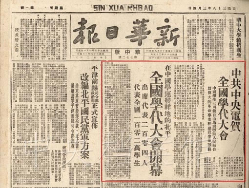 5. 1949年3月4日,《新華日報》關于全國學代大會的報道