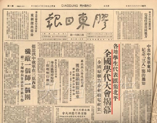 7.1949年3月9日,《膠東日報》關于中華全國學聯(lián)成立的報道