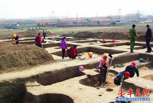 從3月26日開始,經(jīng)國家文物局批準,山東大學考古實習隊與青島市文物保護考古研究所合作,對青島市即墨北阡文化遺址進行了第二次考古鉆探和發(fā)掘。記者 4月6日采訪了解到,在2007年第一次發(fā)掘的基礎(chǔ)上,此次又新發(fā)掘了四座周代墓葬,發(fā)現(xiàn)了成套的陶器及殉狗等,同時還發(fā)現(xiàn)了大汶口文化早期的二次合葬墓及“紅燒土”房屋遺址等。據(jù)介紹,本次發(fā)掘活動將持續(xù)到 5月底,力爭通過發(fā)掘和研究追溯和還原6000多年前先民們的生活狀態(tài)。