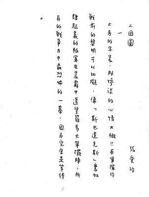 這兩個月我一直在忙著寫長篇小說《小團圓》,從前的稿子完全不能用,F(xiàn)在寫了一半。這篇沒有礙語! 我在《小團圓》里講到自己也很不客氣,這種地方總是自己來揭發(fā)的好。當然也并不是否定自己。
