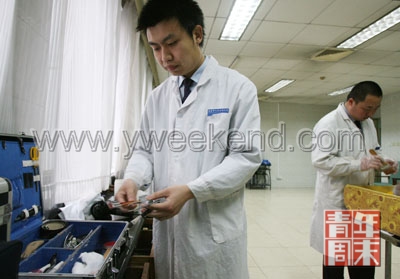 去年殯儀館招來一個漂亮的小姑娘,第一天培訓(xùn)結(jié)束后,老師傅問她有沒有男朋友。小姑娘說有。老師傅回頭沖著張洋喊,別惦記了,人家有。后來,張洋鼓足勇氣追過一陣,但沒追上。坐在記者對面,他有點不想提“失敗的原因”。其實,這個男孩長得很精神,只是臉上常常流露出一種不符合年輕人的老氣和憂郁!翱赡芪业男愿駟栴}吧,我像一60年代的人,不活份,不新潮!睆堁笳f不清自己是天生如此,還是這份工作造成的——至今,他都不習(xí)慣用Ipod,聽音樂還用CD機。