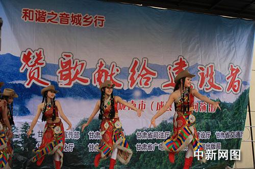 中新網(wǎng)隴南5月6日電 (記者 劉薛梅)“和諧之音城鄉(xiāng)行-贊歌獻(xiàn)給建設(shè)者”慰問演出活動(dòng)今天在甘肅省隴南市成縣店村舉行。