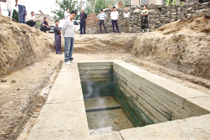 據(jù)了解,5月3日上午10時,前川街群光村一陳姓居民,率領施工人員在自建房屋挖地基時,挖掘機突然挖掘到青石砌成的大坑,移開青石板蓋,露出一具棕紅色棺材,現(xiàn)場人員意識到可能是古墓,立即停止施工,并報告了文物部門。