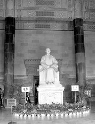 第四路段自下關(guān)中山碼頭至中央黨部、再至中山陵,采用汽車。5月28日12時(shí)10分,威勝艦抵達(dá)下關(guān)中山碼頭。靈櫬上岸,由北京杠夫抬入靈車,在場(chǎng)的國(guó)民黨中央委員以及孫中山家屬,均親手扶棺奉移。那輛加長(zhǎng)的靈車是特地向美國(guó)納喜車行定做的。靈車沿新修成的迎櫬大道緩緩而行,下午3時(shí)15分抵達(dá)中央黨部,仍由北京杠夫?qū)㈧`櫬移入祭堂。
