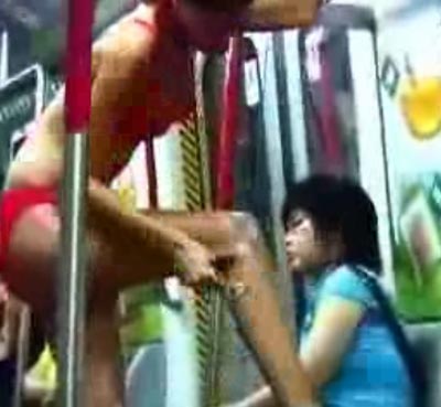 昨天(6月2日),記者在網(wǎng)上搜索,發(fā)現(xiàn)廣州地鐵上也曾有多宗雷人行為藝術(shù)表演。在一張名為“廣州地鐵上的雷人一幕”照片上,兩名打扮女性化的男子,各自抱著一個(gè)枕頭坐在地鐵上談笑風(fēng)生。此外,還有一段“廣州地鐵上的行為藝術(shù)”視頻更是讓人不可思議,一名打扮成空姐模樣的女子上到地鐵后,立即放下行李箱,脫去外套和襯衣,把地鐵扶桿當(dāng)作晾衣架,全身上下只剩下內(nèi)衣,她不緊不慢拿出鏡子抹完口紅后,把腳踏在車廂內(nèi)的坐椅上,然后刮起了腿毛,之后,又把衣服穿上,不少乘客見狀紛紛躲避。