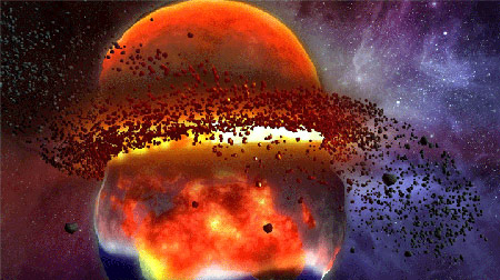 據(jù)美國(guó)《科學(xué)》雜志在線新聞報(bào)道,盡管太陽(yáng)系現(xiàn)在看起來(lái)平靜而穩(wěn)定,但它的形成卻要感謝災(zāi)難般的天體碰撞和其他“暴力事件”?茖W(xué)家們相信,我們的月球便是由一顆火星大小的天體與年幼的地球碰撞后留下的碎片凝結(jié)而成的。天王星一直在側(cè)著身旋轉(zhuǎn),這可能也與行星碰撞有關(guān)。而木星的巨大質(zhì)量使得只有小行星能夠占用它與火星之間的軌道,任何大型天體都會(huì)被這顆氣態(tài)巨行星的引力逐出這一空間。