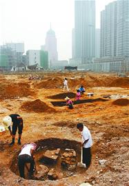 記者在考古發(fā)掘開始后不久進(jìn)入現(xiàn)場(chǎng),看到了已經(jīng)清理出來(lái)的20多座古墓。據(jù)正在現(xiàn)場(chǎng)的市考古研究所技術(shù)人員郭俊峰介紹,這個(gè)區(qū)域已經(jīng)探知的古墓約40座,已 發(fā)掘的有20多座,上到漢唐,下到宋元,時(shí)間跨度很大,這說(shuō)明此區(qū)域是具有相當(dāng)長(zhǎng)歷史傳承的墓地。另外發(fā)現(xiàn)的10座古窯遺址,也正在清理和研究中。