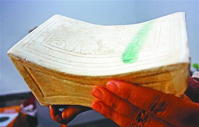 這次發(fā)掘的文物有幾件以前在濟(jì)南地區(qū)很少出土,除了上面說(shuō)的銅印章,還有兩件宋代陶瓷枕。兩件陶瓷枕中完整的一 件為白釉印花枕,長(zhǎng)約20厘米,高10厘米,寬11厘米,兩個(gè)枕面一側(cè)還有一抹綠色,十分鮮艷。李銘說(shuō),這件白釉印花枕所用胎土為高嶺土,文飾清晰,線條 流暢,品相完好,可以說(shuō)是濟(jì)南地區(qū)出土的同類器物中最精美的,也體現(xiàn)出宋代人的審美情趣。另一件為三彩獅子牡丹紋枕,出土?xí)r殘破,現(xiàn)經(jīng)整修,基本復(fù)原了整 體面貌。這件陶瓷枕的枕面上刻印的是牡丹紋飾,牡丹為紅色,周圍有綠色葉子,顯得很是艷麗。枕身主要的一面為一只堆塑的獅子,形態(tài)逼真,富有活力。李銘指 著獅子牡丹紋枕對(duì)記者說(shuō):“這是一件宋代的三彩器,別看有點(diǎn)殘,但價(jià)值比白釉印花枕還要高,因?yàn)橄襁@樣做工精美、色彩保存基本完好的三彩陶瓷枕少有出土。 而且這件枕可能是淄博窯的作品,也就是咱們山東自己的窯燒制的,雖然不是著名窯口的產(chǎn)品,但對(duì)于山東考古來(lái)說(shuō)具有更高的價(jià)值。這樣的陶瓷枕在濟(jì)南地區(qū)出土 是非常少見的。”