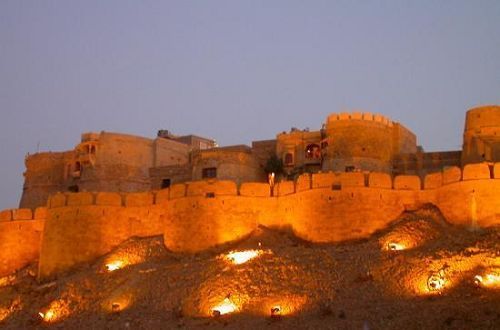 齋沙默爾是印度最西部的大城市,再往西100多公里就是巴基斯坦,地處沙漠地區(qū),整個(gè)城市的建筑多以黃色的砂巖修建,于是有“金色之城”的稱號(hào)。中世紀(jì)是絲綢之路上重要的都市,1156年由齋沙默爾王開始在山丘上修建城郭,經(jīng)過800年的累積與善用沙漠地利之便,建成易守難攻的齋沙默爾堡,以黃色砂巖建造的城堡聳立在城內(nèi)山上。
