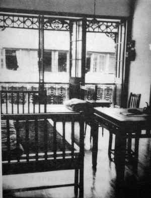 1920年5月5日,毛澤東以“驅(qū)張”代表團成員的身份,從北京來到上海,住在靜安區(qū)原哈同花園附近的哈同路民厚里29號(今安義路63號)。這是一幢磚木結(jié)構(gòu),坐南朝北,沿街而建的舊式二層樓里弄房子。樓下是會客室兼飯廳。樓上的臥室有一排臨街的長窗。室內(nèi)放著兩張床,一只茶幾和一張桌子。桌上擺著粗瓷茶壺,茶杯及筆硯文具。毛澤東就住在這里。同住的還有李思安、李鳳池、陳書農(nóng)等三個湖南學(xué)生。他們每人每月僅有3元零用錢。過著十分簡樸的生活。四個人輪流做飯,常吃蠶豆煮飯,生活比較清苦。毛澤東在這里每天都要閱讀各地的報刊和書籍。他還邀請十多位旅滬青年,成立了“自修學(xué)社”,共同學(xué)習(xí)各種理論著作和外語。1920年6月7日,毛澤東寫信給北京的黎錦熙老師,信中談及南下見聞和自己追求革命的決心,說他準(zhǔn)備瀏覽在滬“新出的報、雜志、叢書及各種譯本,尋獲東方及世界學(xué)術(shù)思想之大綱要目”。