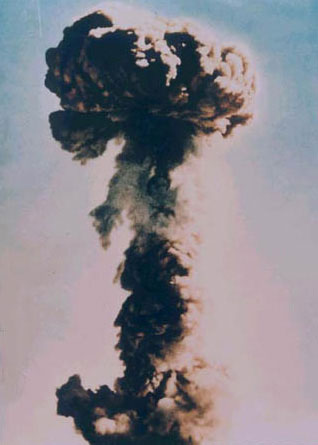 1964年10月16日下午3時(shí)。新疆羅布泊上空,我國(guó)第一次將原子核裂變的巨大火球和蘑菇云升上了戈壁荒漠。第一顆原子彈爆炸獲得完全的成功。中國(guó)成為世界上第5個(gè)擁有核武器的國(guó)家,極大地提高了中國(guó)的國(guó)際地位和影響。