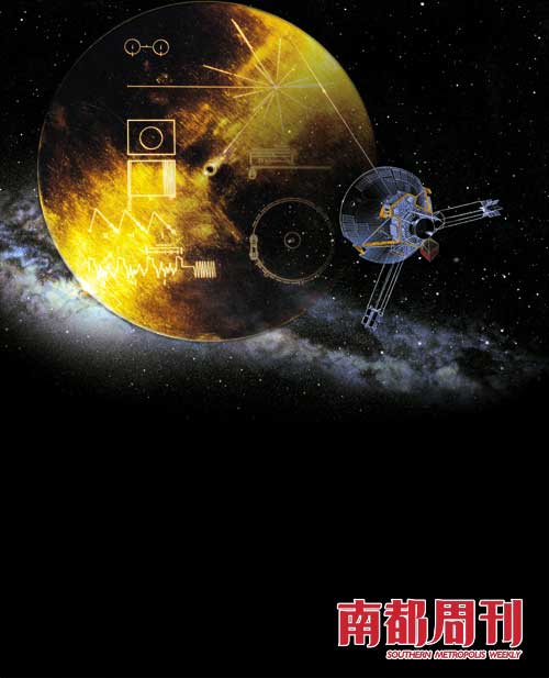兩艘“先驅(qū)者號”飛船上都安裝有一個金屬板,它可謂是地球人送給外星人的“名片”。金屬板的左側(cè)刻有太陽系的圖案;右側(cè)刻有一個男人和一個女人的圖像,男人在招手致意;下方刻有太陽及太陽系九大行星的編碼。在兩艘“旅行者號”飛船上都裝有送給外星人的“郵包”:一個圓形鋁盒,里面放著一張鍍金視聽光盤。讀取光盤數(shù)據(jù)的說明寫在鋁盒的蓋子上。光盤上收錄了 115張圖片,介紹了地球文明最重要的一些資料 (如中國萬里長城、脫氧核糖核酸的分子式等);錄有地球人用 55種語言向外星人發(fā)出的簡短問候;存有 35種聲音信息;還有地球人的音樂文化(如巴赫的作品、爵士樂、中國名曲《高山流水》等)。