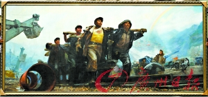 《開路先鋒》作者之一魏景山在接受本報(bào)記者采訪時(shí)說,《開路先鋒》創(chuàng)作于1972年,當(dāng)時(shí)恰好是《延安文藝座談會(huì)上的講話》發(fā)表30周年,全國美展即將舉辦。于是,他和陳逸飛前往南京梅山鐵礦工程采風(fēng)寫生,回來后就畫了這幅畫。在這幅長達(dá)4.5米的油畫上,一群筑路工人抬著鋼軌在風(fēng)雨中前進(jìn),表現(xiàn)出工人階級(jí)豪邁的氣概。魏景山告訴記者,《開路先鋒》實(shí)際創(chuàng)作就陳逸飛和他兩個(gè)人。油畫的背景是兩人共同畫的,畫面上的人物略有分工,“畫面上,那個(gè)穿黃色背心的年輕工人就是陳逸飛畫的,我畫了年紀(jì)比較大的工人!