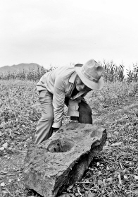 “3年前,我家姑娘種地時,從里面挖出一塊大石頭,現(xiàn)在還放在田邊!弊箝L存所說的這塊石頭長約60厘米,寬約40厘米,石頭中間有一個碗口大的坑,坑壁光滑,深約30厘米。