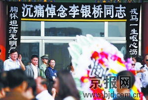 今天上午10時,毛澤東衛(wèi)士長李銀橋追悼會在八寶山殯儀館舉行。李銀橋生前同事、友人和眾多滿懷對老人崇敬之情的市民參加了遺體告別儀式。李敏、毛新宇等毛澤東親屬也來到追悼會現(xiàn)場。