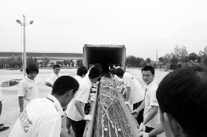 據(jù)趙偉平介紹,3幅網(wǎng)幕焰火巨作,共用了27輛“小火車”,“小火車”又分別坐上了5輛重型貨柜車,終于運抵了天安門廣場。(郝濤)