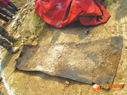 第二天上午記者聞訊趕到現(xiàn)場,見到一座五六米高的土坡被掘去一半,古墓的白灰空洞懸在土坡切面的半腰處,棺木散落在土方旁。泥地上有一大攤水漬,有人提醒道,別踩著,那是從棺材里流出來的水。女尸已被人用廢舊的紅地毯裹卷著,停放在不遠處的平地上,旁邊還有一張潮濕的舊篾席。后來獲知席子原先墊于尸首下,是從棺木中取出的。仔細一打量,篾席上長時間壓出的人形痕跡清晰可見。圍觀的人越來越多,不時有人上前,欲掀開地毯一睹新奇,好在兩個民警一旁維持秩序,好事者才不敢妄動。