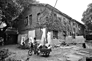 昨天,記者在28號(hào)院看到,幾座風(fēng)格相同的樓房均為日式建筑,外觀完好。外立面上生長著爬山虎,有些窗戶已破損,鐵欄桿還在。