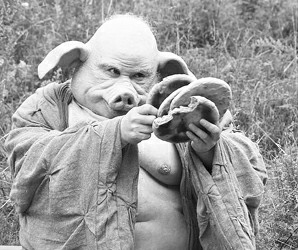 在這組劇照中,有豬八戒咬手指、拿大餅、斜眼看人等,不僅面目可憎,甚至透著一股兇氣。由于豬臉布滿皺紋,頭發(fā)和眉毛皆白,老態(tài)龍鐘,滿臉滄桑。為突出豬八戒的肥壯,演員臧金生還裝了個假肚,肚上堆滿了贅肉,連后腦勺和后頸部都布滿贅肉。不少網(wǎng)友表示,這個造型“太像一頭真豬”,沒有半點藝術(shù)美感,不如老版憨態(tài)可掬的豬八戒那么可愛。