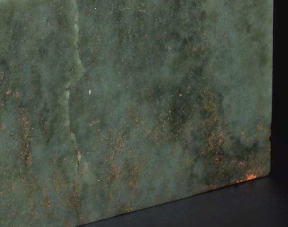 李教授現(xiàn)為江蘇省書畫鑒定小組主任委員,他潛心研究篆刻三十多年,他向記者介紹:清代乾隆二十五年后時玉器制作進入玉器史上的鼎盛期,而在玉器質(zhì)地的選料上,都是由新疆大吏搜羅開采頂級的上品而充貢內(nèi)廷。而且皇帝玉璽成品都很規(guī)整,幾乎做到玉璽無筋、無柳、無瑕,用于制作玉璽都為最好的肉質(zhì),開料與玉璽制成的比率很低,原料的浪費極大,為的就是選料的純靜,美玉良工以確保玉璽的精美度,而此次拍賣的乾隆“八徵耄念之寶”青玉璽,目鑒便知玉質(zhì)上有大片的柳絮紋。(圖一)玉質(zhì)當(dāng)屬普通青玉料,皇家玉璽是不會選這種檔次的玉料制作的!
