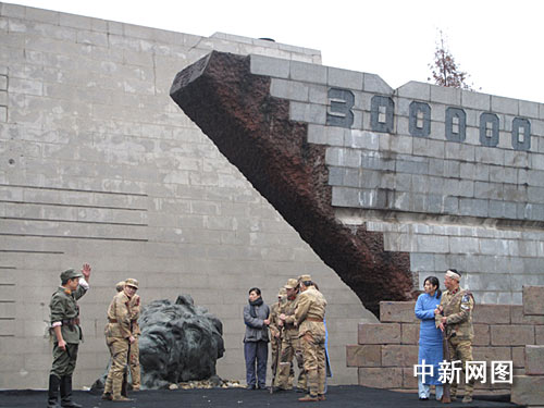 為紀(jì)念“南京大屠殺”事件爆發(fā)七十二周年,悼念南京三十萬同胞遇難七十二周年,為了讓廣大人民群眾尤其是青少年勿忘國恥,珍惜和平,為反映發(fā)生在南京的重大歷史事件,今天中午,南京市話劇團(tuán)在江東門“南京大屠殺遇難同胞紀(jì)念館”現(xiàn)場演出舞臺劇《淪陷》。