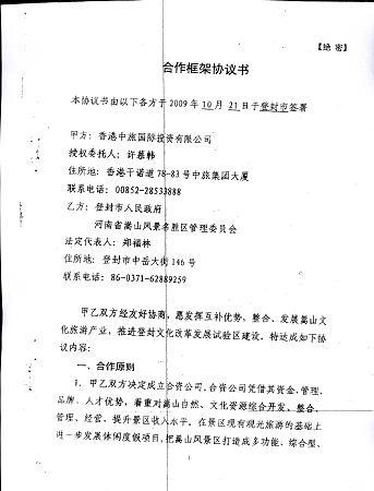 被少林寺方丈釋永信辟謠多次的“少林寺上市”或許并非空穴來風(fēng),不過這一次秘密運作2011年“上市”的是登封市政府,連少林寺也被蒙在鼓里。香港中旅集團(tuán)與登封市簽署的《合作框架協(xié)議書》和《登封市政府常務(wù)會議紀(jì)要》顯示,雙方確定斥資一億元成立“港中旅(登封)嵩山少林文化旅游有限公司”,其中港方占51%股本控股,少林寺門票經(jīng)營權(quán)等嵩山少林景區(qū)資產(chǎn)則被登封市作價4900萬元作為入股的一部分。(12月16日千龍網(wǎng))