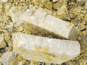 走下山坡看見山腰中間留下了大量挖土機(jī)機(jī)爪的痕跡,抓痕里不時(shí)夾雜著一些墓磚。繞過中間的池塘,我們來到對(duì)岸的山坡。同樣,這里也是一處墓群,地面上墓磚被丟棄一地,考古專家告訴記者,從土層暴露出來的墓磚看,也是三座大墓,“中間一座肯定是近日被挖開的,這些堆土是新填的,盜墓賊已經(jīng)將古墓洗劫一空,然后做了偽裝,把挖開的古墓又填埋了”。據(jù)他介紹,這三座古墓全都是東西向葬式,墓形都很大,從墓形規(guī)模可以斷定,這是一處六朝早期的貴族墓群。