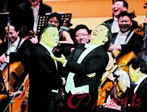 夸張的音樂演奏、滑稽的肢體語言、略帶叛逆味兒的樂曲講解、令人捧腹的現(xiàn)場對白……前晚,北京中山公園音樂堂上演“歡樂頌·交響音樂‘新’賞會”,“海派清口”創(chuàng)始人周立波與著名指揮家余隆領(lǐng)銜的中國愛樂樂團(tuán),為觀眾奉獻(xiàn)了一場別開生面的音樂對話。