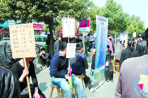 張旭告訴記者,每年從年初八開始到元宵節(jié),都是義烏老板招工的高潮,而今年因?yàn)橛唵味啵泄ぞ吞貏e迫切。