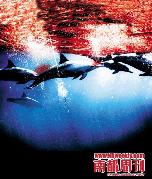 當海豚灣泛起的猩紅海水,那是挑選剩下的海豚,在最恣意而粗暴的血腥屠殺中被無情地處決。這也就像是海豚在今天的地球上某種悲劇性命運的高潮。