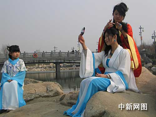 中新網(wǎng)西安3月7日電(記者 冽瑋)敢將十指夸針巧,不把雙眉斗畫(huà)長(zhǎng)……7日下午,西安的一些漢服愛(ài)好者聚集在唐曲江池遺址公園,展示千百年前中國(guó)古代女性盛妝打扮的姿容,迎接“三八”國(guó)際勞動(dòng)?jì)D女節(jié)。