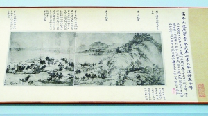 清乾隆十年(1745年),一幅《富春山居圖》被征入宮。乾隆皇帝見到后愛不釋手,不時(shí)取出來(lái)欣賞,并且在6米長(zhǎng)卷的留白處加蓋玉璽,賦詩(shī)題詞。沒想到,第二年,另外一幅《富春山居圖》又被進(jìn)貢到了御案上!