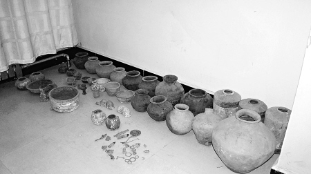 據(jù)4名犯罪嫌疑人交代,他們春節(jié)后一共盜掘墓葬4次。1月中旬的一個晚上,他們帶著鐵锨、䦆頭、手電筒、繩子和探桿,開著奧拓車來到楊橋畔鎮(zhèn)三隊圪梁漢墓群探墓。因當(dāng)時選的盜墓地點土質(zhì)堅硬,沒有挖掘到什么文物。3月17日,4人又來到漢墓群,在以前挖的一個盜洞周圍探到了墓穴,便開始輪流挖土,從漢墓里只挖出了一個小飾品。3月18日,4人再次來到漢墓群,2個人先用探桿探到墓穴,然后4人輪流開始往下挖土。不想恰逢記者驅(qū)車前來采訪,4人倉皇逃離。3月 20日,聽見沒有風(fēng)聲,4人繼續(xù)從以前的盜洞往下挖,挖到墓底,在墓穴里找出了2個陶罐、1個帶花紋的陶鼎、1個陶盤和1個陶俑等文物。據(jù)悉,4名盜墓賊落網(wǎng)后,警方共查獲4嫌犯此前盜得的小銅件及陶罐等文物50余件。