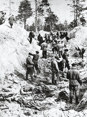 1943年4月13日,柏林電臺向全世界報告的一則消息,說在蘇聯(lián)斯摩棱斯克附近的卡廷森林發(fā)現(xiàn)了一批埋有成千上萬波蘭軍官尸體的巨大墳?zāi),他們都是被人有步驟并且熟練地處決的。