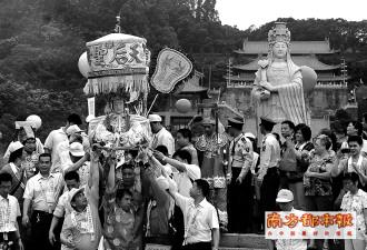 下午1時40分許,從臺灣專程趕來的500信眾,手捧數(shù)十尊天后像隆重入場祭拜。他們穿著傳統(tǒng)服裝,攜帶各種旗幟及獅陣、太子陣、將爺陣等隊形進(jìn)入天后宮。據(jù)說,昨天午后1時40分是拜祭媽祖的吉時。據(jù)悉,今后臺灣信眾有望繼續(xù)前往南沙天后宮參加媽祖誕。