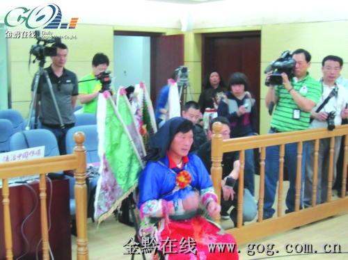 昨日的庭審現(xiàn)場,兩位全身披掛地戲服飾的地戲演員詹學(xué)彥、曾玉華作為證人出庭作證。兩人證明了當(dāng)初受《千里走單騎》劇組邀請,參加拍攝了“千里走單騎”、“戰(zhàn)潼關(guān)”兩幕安順地戲的事實(shí)。詹學(xué)彥還委曲地說,影片上映后,他被許多屯堡人罵他“賣祖宗”。