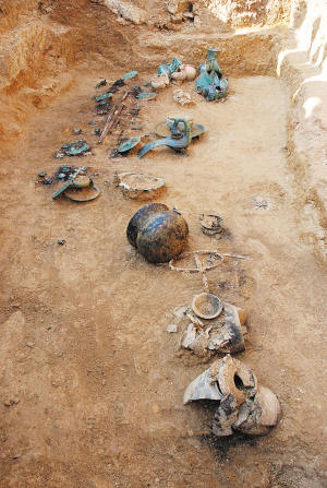 3月15日至5月18日,在省文物考古隊(duì)領(lǐng)隊(duì)楊帆研究員的帶領(lǐng)下,工作人員在西老硐坡發(fā)掘了15座漢墓,挖出了400余件(套)文物。“這是一個(gè)巨大的漢墓群,總面積2萬平方米,面積之大實(shí)屬罕見!睏罘f,這個(gè)漢墓群發(fā)現(xiàn)比較早,今年已是第四次發(fā)掘。因?yàn)橛昙炯磳砼R,考慮到安全因素,野外發(fā)掘?qū)⒁Y(jié)束,現(xiàn)在專家將在室內(nèi)對文物進(jìn)行修復(fù)。剩下的8000多平方米,將在國慶節(jié)以后再次發(fā)掘。