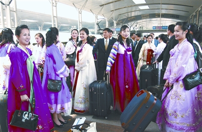 鮮艷的朝鮮族長裙,200多人的龐大團(tuán)隊(duì)。昨日上午,即將在漢演出歌舞劇《紅樓夢》的朝鮮血海歌劇團(tuán)抵達(dá)武昌火車站時,吸引了眾多旅客關(guān)注目光。雖然團(tuán)隊(duì)并未接受媒體采訪,但記者仍多方打探出許多細(xì)節(jié)。