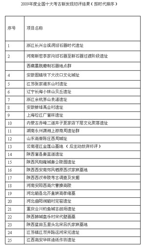 中新網(wǎng)5月31日電 來自國家文物局的消息,2009年度全國十大考古新發(fā)現(xiàn)評(píng)選初評(píng)工作日前順利完成。