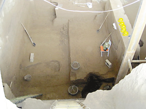 那么,與之緊鄰的1號(hào)陪葬墓是什么樣的呢?考古隊(duì)員告訴記者,此墓小于曹操墓,不是磚石墓,而是土坑墓,在迄今為止的發(fā)掘進(jìn)程中未發(fā)現(xiàn)一磚一石,全是土,且多處塌方!巴量幽乖趹(zhàn)國(guó)時(shí)期就有,魏晉南北朝時(shí)期很流行。安陽(yáng)之前也發(fā)現(xiàn)過(guò)不少土坑墓,但從來(lái)沒(méi)有見(jiàn)過(guò)像1號(hào)墓這么大的。”該考古隊(duì)員告訴記者,土坑墓有個(gè)好處,因?yàn)槎家阉,盜墓賊盜的時(shí)候要比磚石墓復(fù)雜得多。