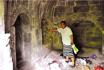 遺址內(nèi)一處標(biāo)有文物保護(hù)單位的“晏公祠”也遭人破壞,里面的石刻被鑿壞,洞穴內(nèi)還遺留著廢舊衣物、報(bào)紙、食品袋等垃圾。遺址內(nèi)的工人表示,他們是附近金山陵園的工人。但隨后趕到的金山陵園工作人員表示,此事與他們沒(méi)有任何關(guān)系,否認(rèn)此事為他們所為。