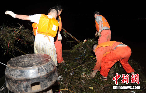 中新網(wǎng)重慶7月19日電(郭虹 朱治宇) 預(yù)計(jì)今天下午5時(shí)過(guò)境的長(zhǎng)江今年以來(lái)最大洪峰將晚點(diǎn)3個(gè)小時(shí),于晚八點(diǎn)左右通過(guò)重慶主城。連續(xù)兩日來(lái),江水上漲了15米多,江水不僅淹沒了江邊一些房屋,江中的漂浮物還對(duì)江上航標(biāo)形成威脅。