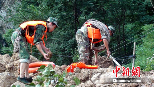 據(jù)介紹,接到搜救命令后,19名官兵迅速挺進(jìn)救援現(xiàn)場(chǎng),由于受暴雨侵襲,到大竹河鎮(zhèn)臨河村大部分道路交通中斷,通行非常困難,在前往臨河村的途中,險(xiǎn)情錯(cuò)綜復(fù)雜,并不時(shí)還有山石墜落,由于對(duì)當(dāng)?shù)氐匦蔚孛膊皇煜,全體搜救隊(duì)員每前進(jìn)一步都帶著威脅,此路段全程12.8公里,再加上沒(méi)有交通工具此行顯得更加艱難,爬山,翻越,走水路渡船,雖然,大家的腳上都磨出泡。在歷時(shí)4小時(shí)后,全體隊(duì)員翻過(guò)一個(gè)又一個(gè)滑坡地段,穿越了一個(gè)又一個(gè)亂石集結(jié)的險(xiǎn)灘激流,終于按照上級(jí)規(guī)定的時(shí)間準(zhǔn)時(shí)到達(dá)目的地。