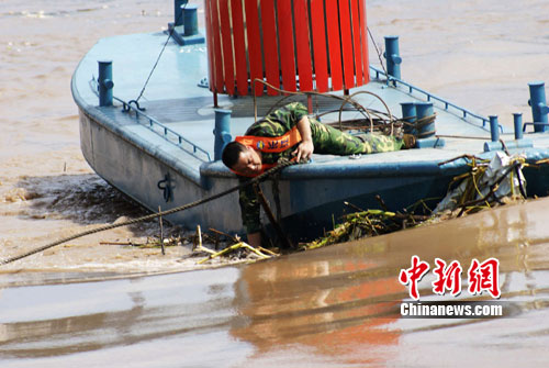 因此次洪峰對庫區(qū)航道的影響相對重慶主城較小,因此庫區(qū)萬州段航道沒有實施禁航,江面上還有大量的船只通行。為此,萬州的航道職工每天將花去近16小時專門清除懸掛在航標上的渣草,恢復被渣草掀翻的航標,以免影響輪船航行的安全。