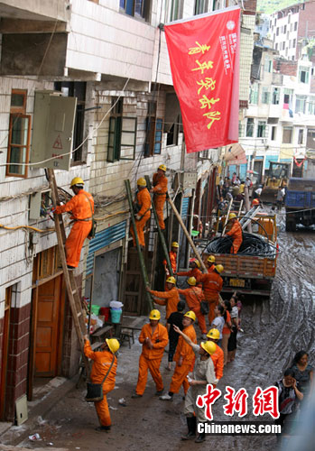 據(jù)成都電業(yè)局抗洪搶險(xiǎn)突擊隊(duì)負(fù)責(zé)人鐘守熙介紹,從21日早上6時(shí)起,突擊隊(duì)就投入到搶修江陵鎮(zhèn)供電系統(tǒng)恢復(fù)、戶表換裝工作,經(jīng)過15個(gè)小時(shí)的連續(xù)奮戰(zhàn),突擊隊(duì)在抗洪搶險(xiǎn)的第一天就完成了1000米電纜線的架設(shè),115支戶表的安裝,還有300多戶表的供電恢復(fù)將全部在23日結(jié)束。