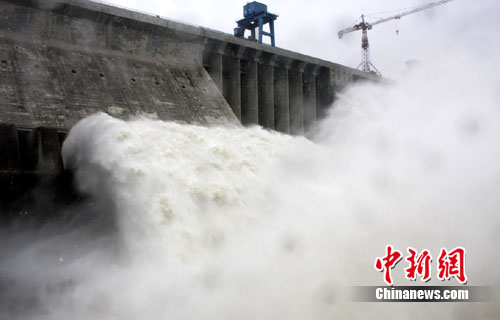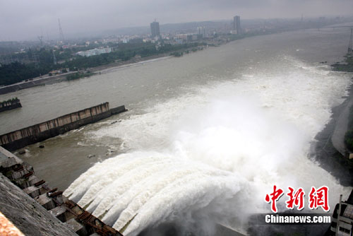 中新網丹江口7月22日電 (陳攀霄)22日13時24分,丹江口大壩開閘泄洪,這是丹江口大壩主體工程全線貫通以來首次開閘泄洪。